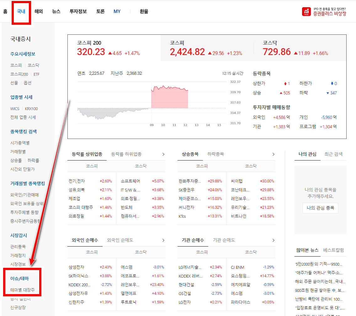 이 외에도 무상증자 관련주 테마주 검색은 앞에서 언급한 것과 같이 포털, 즉 다음이나 네이버를 통해서도 검색이 가능합니다. 각각의 포털에서 금융카테고리의 국내 혹은 국내 증시 메뉴를 클릭하고 확인하면 됩니다.