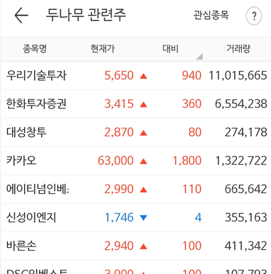 위의 증권사 어플과의 비교를 위해 같은 관련주를 클릭해보면 종목이 다르지 않음을 알수가 있습니다.